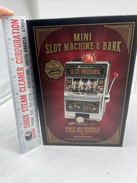 Original Fun Workshop Mini Slot Machine & Bank Battery Light Sounds Jackpot Toy