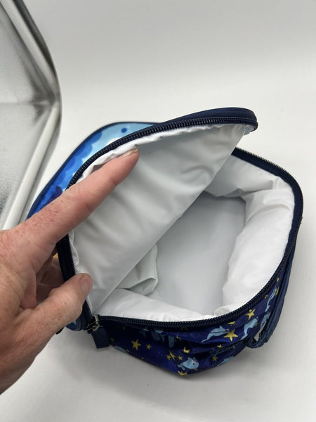 Quest Kids Satin Insulated Lunch Bag Zipper Whale Sea Water Design Blue Cooler