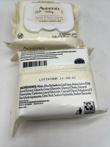 (2) Aveeno Baby Hand & Face Wipes W/ Natural Oat Extract & Aloe- 25ct. Each