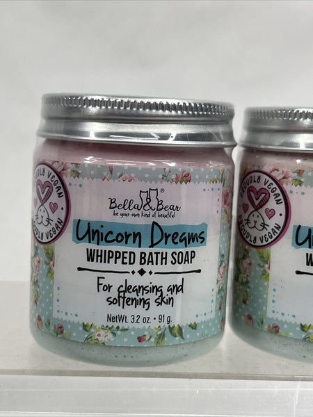 (2) Bella & Bear Unicorn Dreams Whipped Bath Soap Cleaners Shower 3.2oz Gift Set