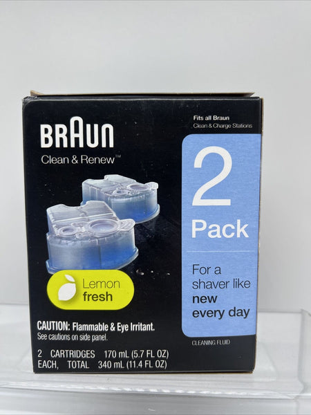 (2) Braun Clean & Renew Refill Cartridges Shaver Cleaner Solution Lemon 4 TOTAL