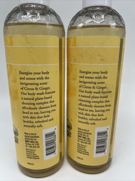 (2) Burt's Bees Energizing Body Wash Citrus & Ginger Plant Based 12oz Discontinu