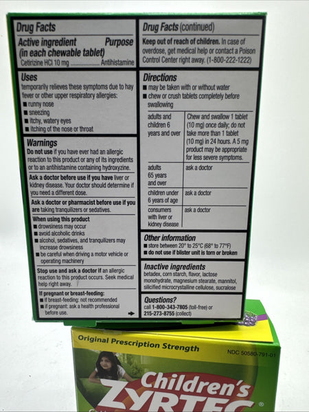 (2) Children's Zyrtec Dye-Free Chewables 24 Tablets Grape Allergy 10mg 4/26