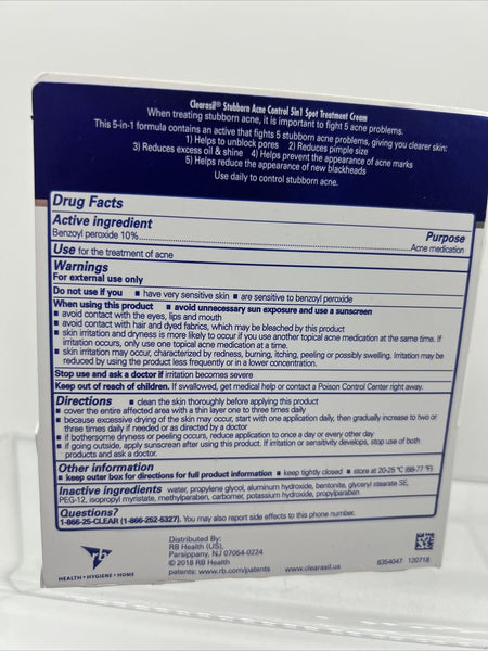 (2) Clearasil Stubborn Acne Control 5 in 1 Spot Treatment Cream 1 oz 1/24