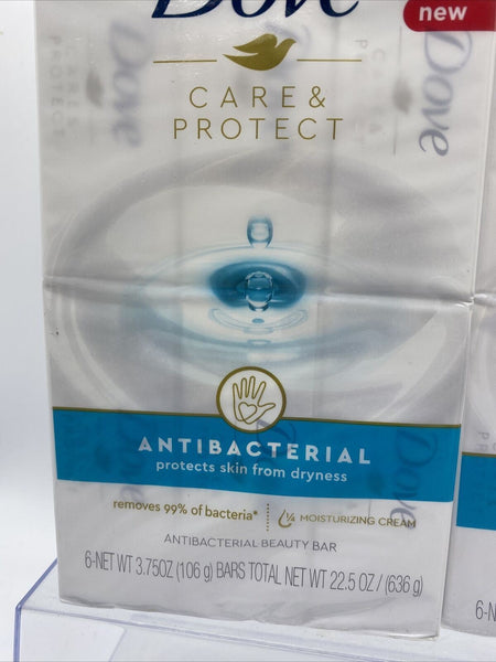 (2) DOVE ANTIBACTERIAL DRYNESS BEAUTY BAR SOAP CARE PROTECT 6 PK BARS 4 OZ EACH