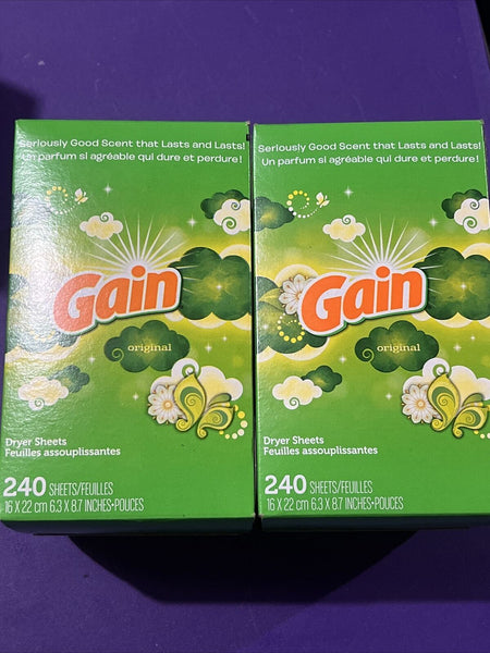 (2) GAIN Original FABRIC SOFTENER DRYER SHEETS BIG 240ctx2