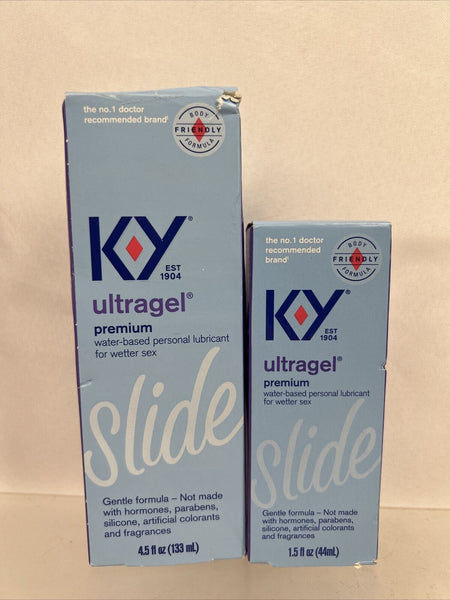 (2) K-Y Ultra Gel Slide Premium Water Based Personal Lubricant 4.5oz &1.5oz1/23+
