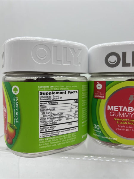 OLLY Metabolism 30 Gummy Rings Apple Cider Vinegar Vitamin B12 Chromium 12/24