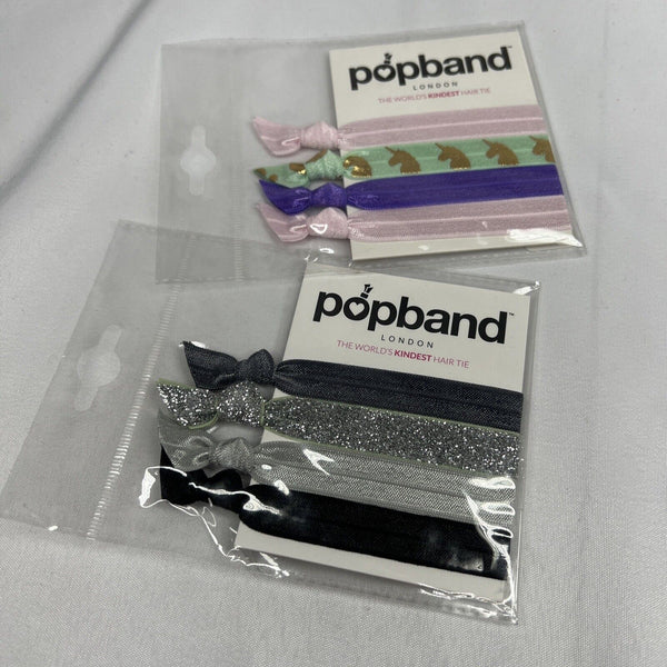 (2) Pop band Pink Purple Black Unicorns No Dent Knotted Ponytailers 4 Hair Ties