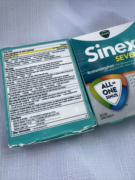 (2) Vicks Sinex SEVERE All-In-One Sinus Pressure Pain Congestion LiquiCaps 24ct