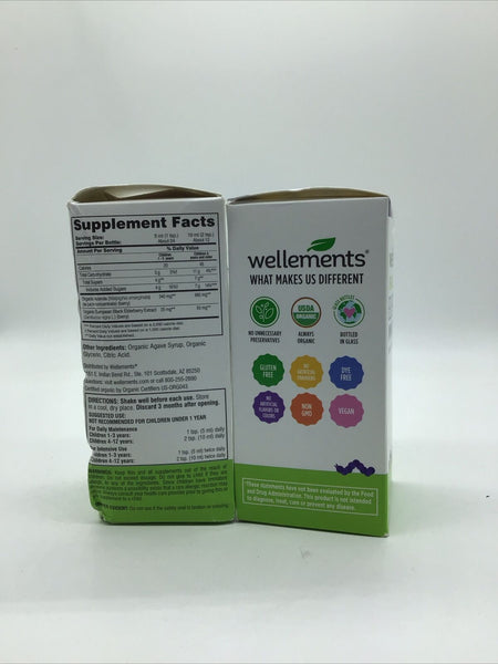 (2) Wellements Organic Elderberry Immune Syrup Age Vitamins 1+ - 4 Fl Oz