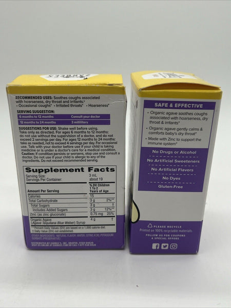 (2) Zarbee's Naturals Baby Cough Syrup Immune Agave Grape Zinc 2oz 11/24