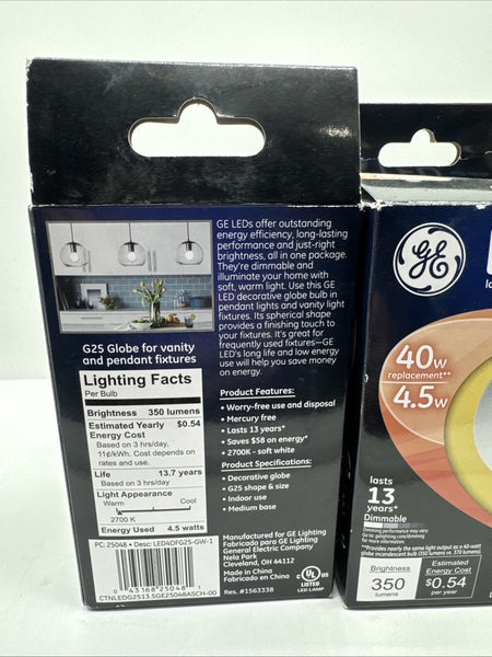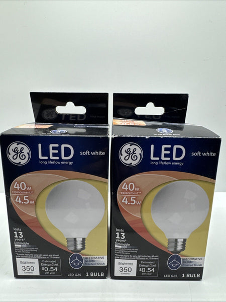 (2)GE 40W/4.5W LED Long Life/Low Energy Soft White 350 Lumens Decorative Glob v9