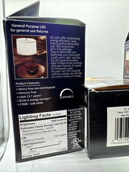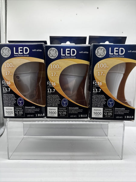 (3) GE 100w/17w Soft White 100 Watt Dimmable LED Bulb 1600 Lumens A21 17W