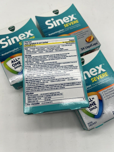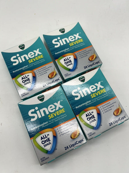 (4) Vicks Sinex SEVERE All-In-One Sinus Pain Congestion LiquiCaps 24ct 7/25+