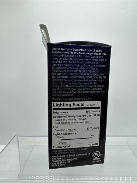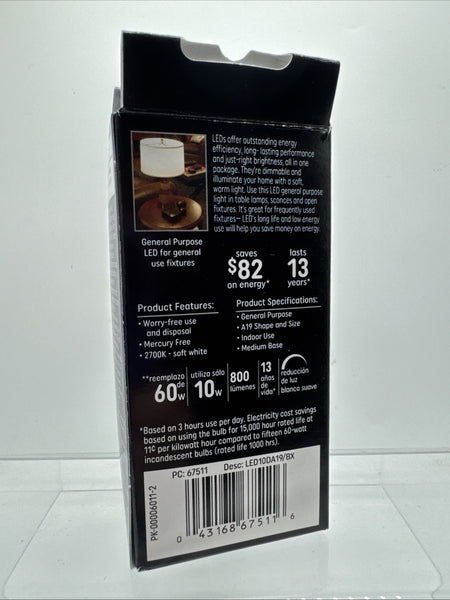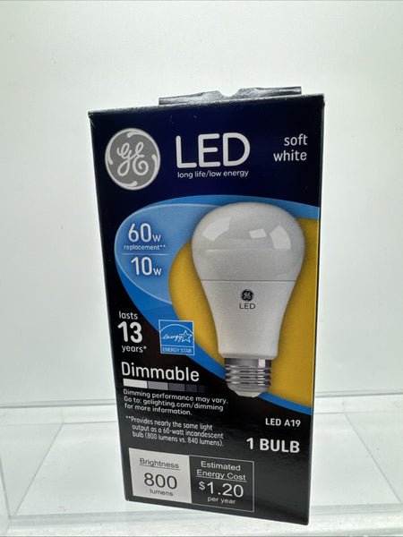 (6) GE LED 60w/10w Soft White A10 67511 800 Lumens Dimmable Light Bulb