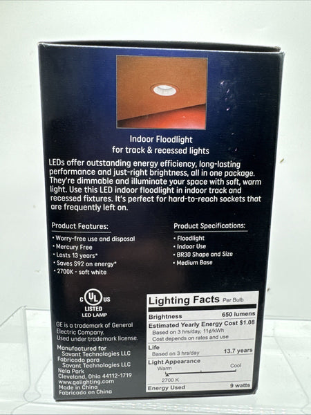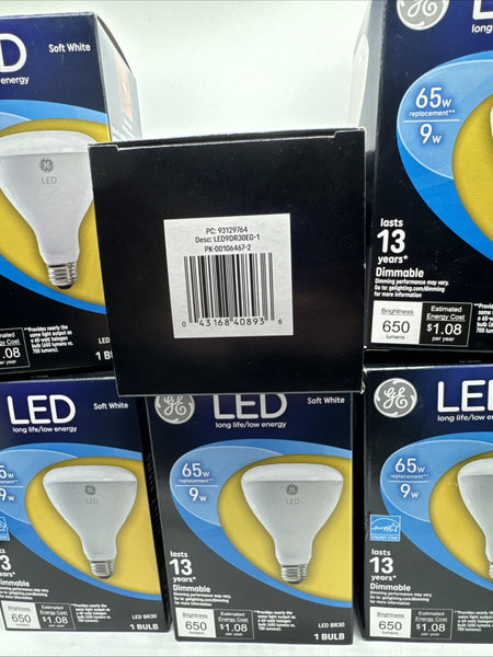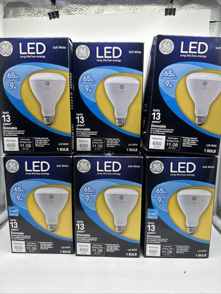 (6) GE LED 65w/9W BR30 Soft White Indoor Floodlight Dimmable Light Bulb