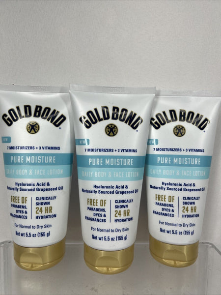 (7) Gold Bond Pure Moisture Daily Body & Face Lotion 5.5 oz. Squeeze Tube