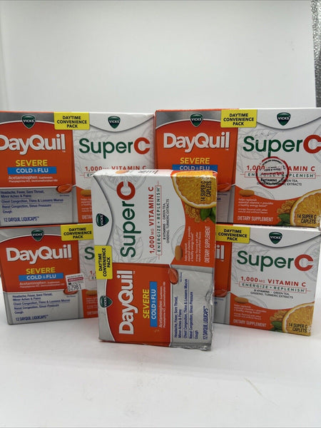 (7) Vicks DayQuil & Super C Convenience Pack Cough Cold Fly 52 Each 12/24