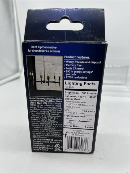 GE Dimmable Soft White 60W LED Clear Bent Tip Decorative CAM Bulbs COMBINESHIP
