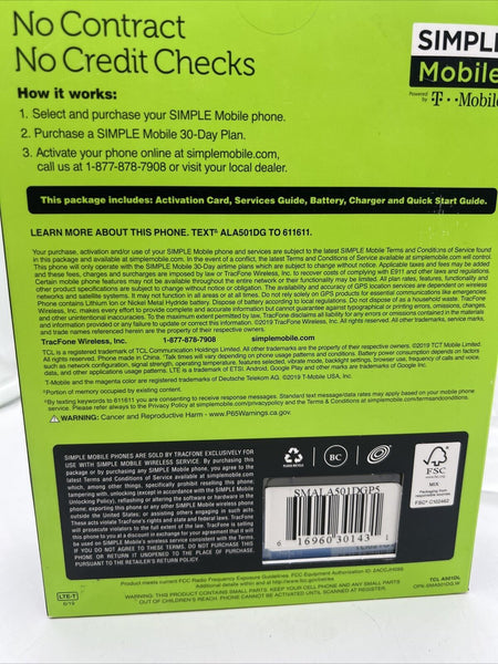 Simple Mobile TCL A1 4G LTE Prepaid Smartphone Black No Contract Unlimited