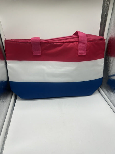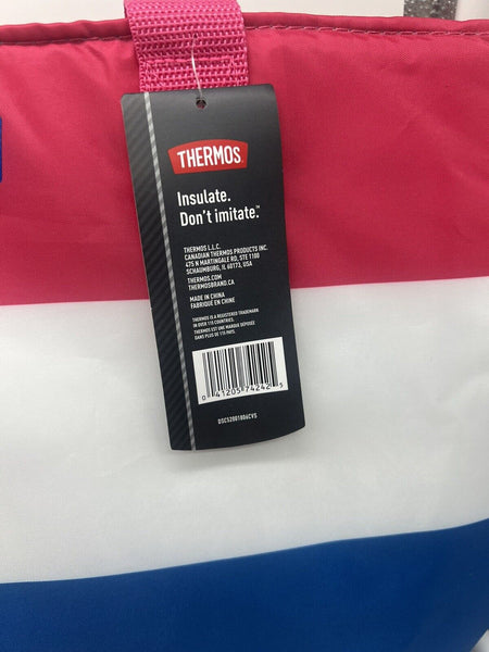 Thermos 18Can Cooler Bag Lunch Tote Insulated Zip Closure Stripe White Blue Pink