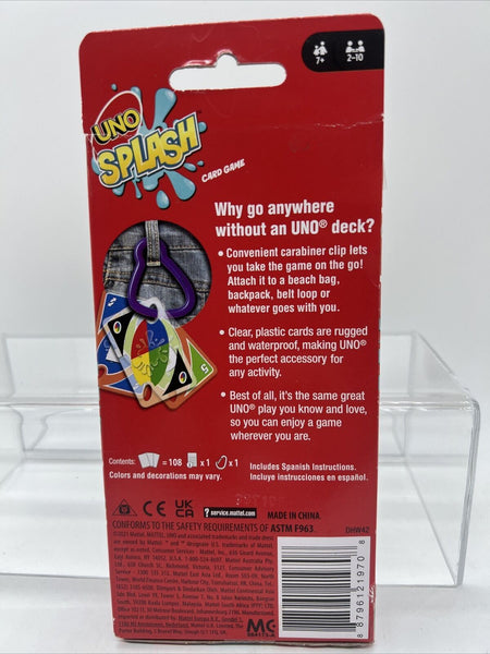 UNO Splash Card Game With Water-Resistant Plastic Cards & Clip - Beach- Pool