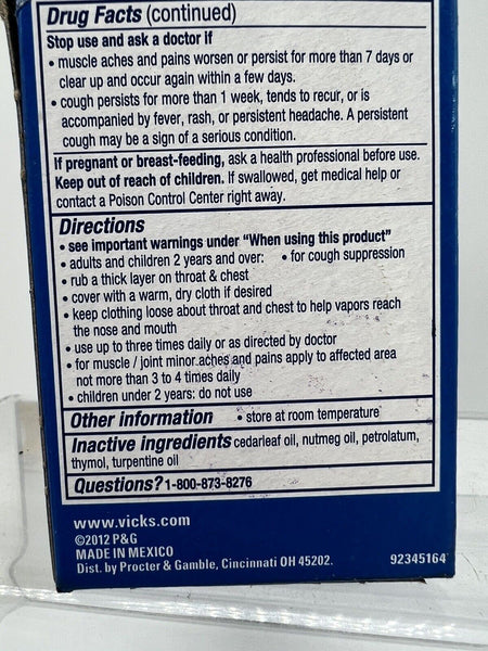 Vicks VapoRub Cough Suppressant Topical Analgesic 3.53oz 12/24 COMBINESHIP