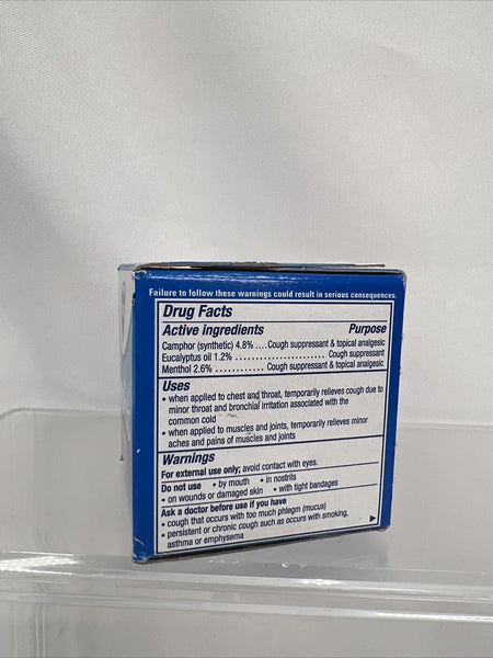 Vicks VapoRub Original Cough Suppressant Topical Analgesic 50 GM 1.76oz 4/26