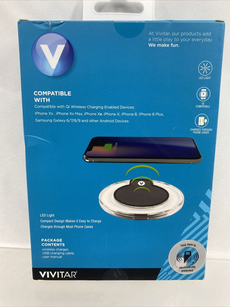 Vivitar Charge Away Wireless QI Charger Black VM20028 Table Flat