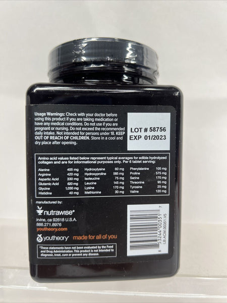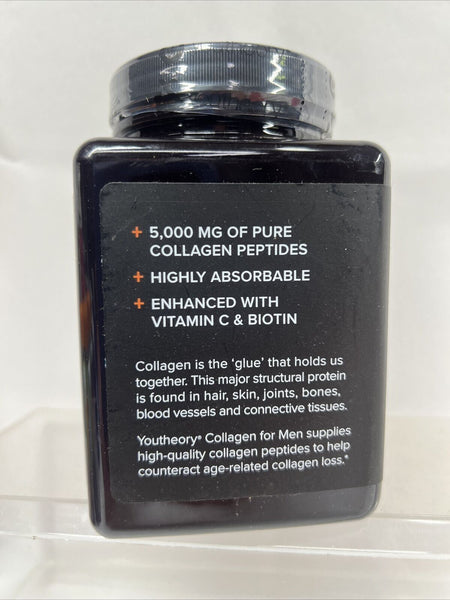 Youtheory Collagen Mens Advanced 290 Tablets Vitamin C Biotin peptides 1/23