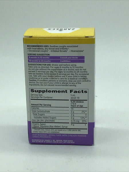 Zarbee's Baby Cough Syrup + Immune Agave Grape Flavor 2oz 10/24 Combine Ship!